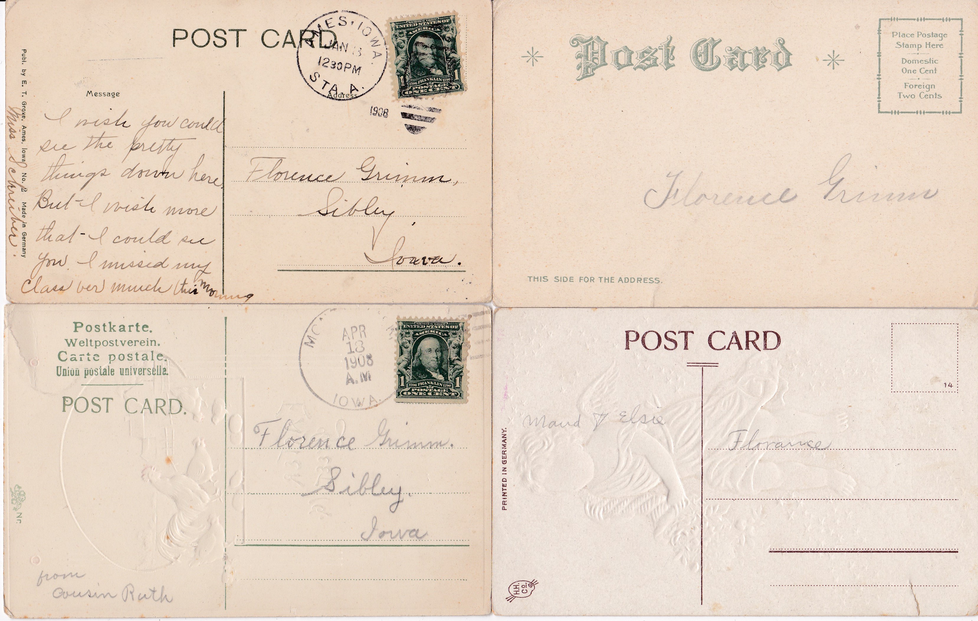 Postcards Postcard collecting seemed to be very popular in the early 1900’s, both Florence & her cousin Lorenz had quite a collection. ◄ 1 2 3